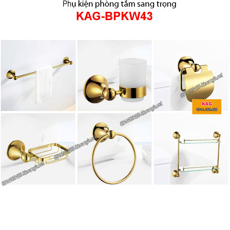 Bộ phụ kiện phòng tắm sang trọng màu vàng KAG-BPKW43