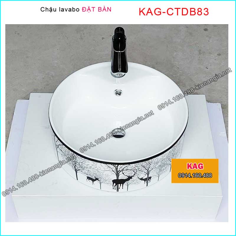 Chậu lavabo hoa văn tròn đặt bàn đá KAG-CTDB83