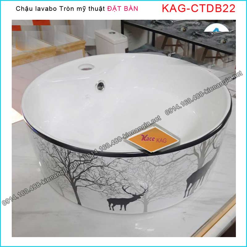Chậu lavabo tròn Trắng họa tiết đặt bàn KAG-CTDB23