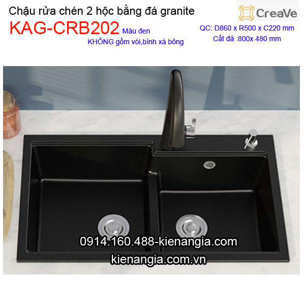 Chậu rửa chén đá granite 2 hộc Creave KAG-CRB202