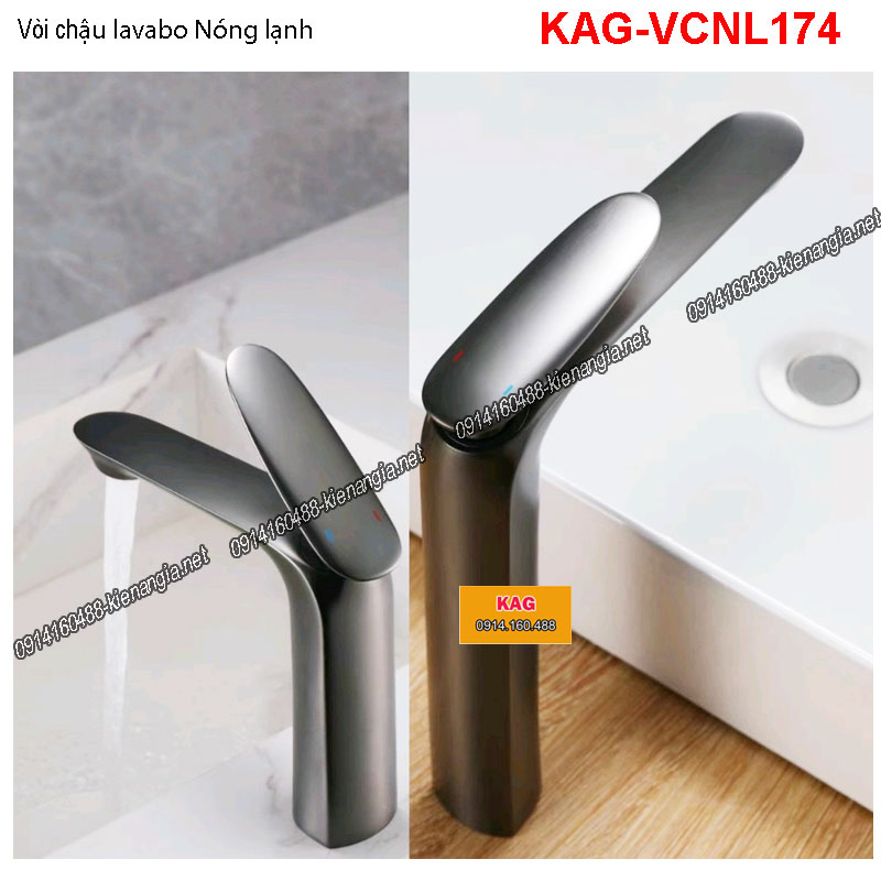 Vòi chậu lavabo nóng lạnh cao cấp Xám  KAG-VCNL174