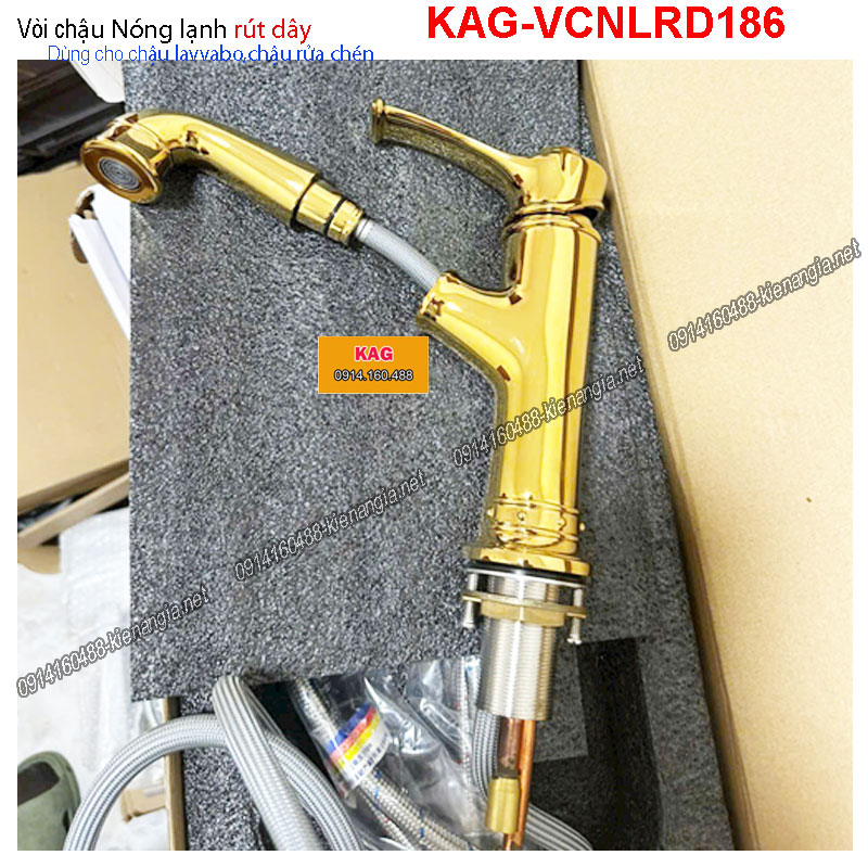 Vòi chậu nóng lạnh rút dây màu vàng 18K KAG-VCNL186,Vòi rút dây chậu lavabo rửa tay,vòi rút dây chậu rửa chén giá tốt KIẾN AN GIA-0914160488